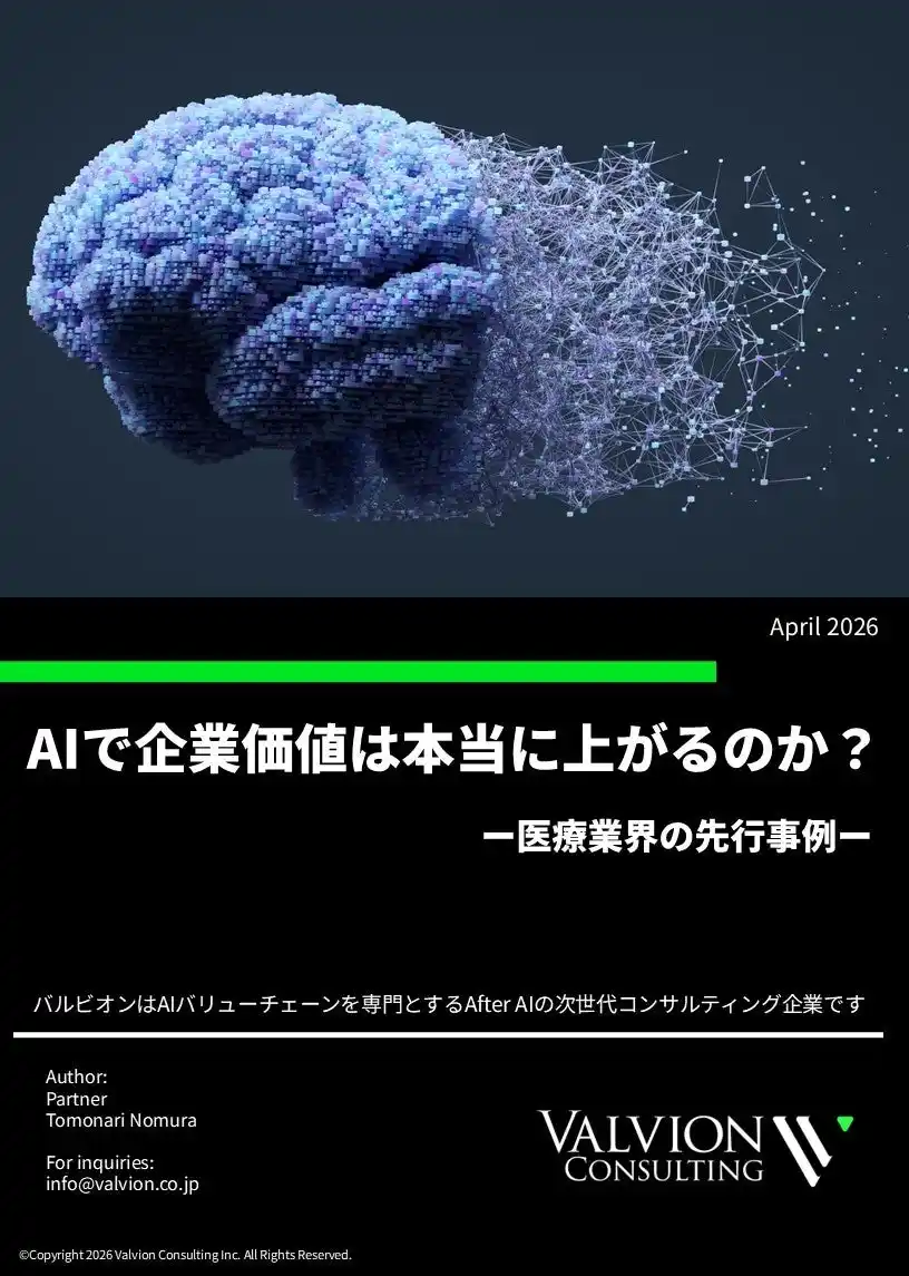 AIバリューチェーン業界に特化するAIネイティブの戦略コンサルティングファーム、バルビオン・コンサルティング株式会社(本社:東京都中央区、代表取締役社長:野村 友成)より、「AIで企業価値は本当に上がるのか?ー医療業界の先行事例ー」のレポートを公開しました。 |
