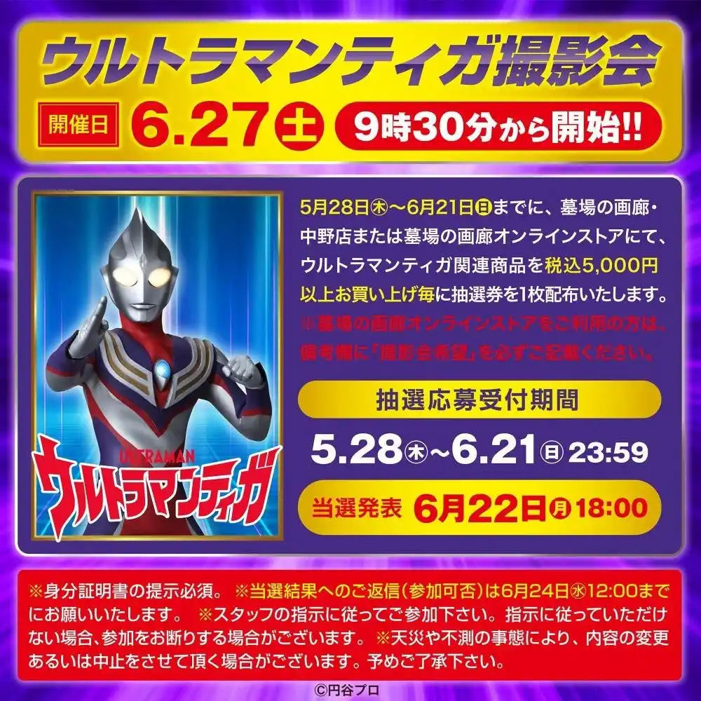 マンガ、アニメ、特撮などを始めとするサブカルチャーをテーマとした企画展を開催・運営している株式会社CRAZY BUMPは2026年5月28日(木)~2026年6月29日(月)の期間で墓場の画廊中野店と墓場の画廊ONLINE STOREにて開催する【ウルトラマンティガ POP UP STORE in 墓場の画廊】の商品情報を公開致します。 |