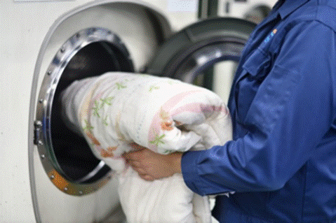 ・布団は、大型の洗濯機で丸洗いを実施。専用の乾燥設備で中までしっかり乾燥させることでふわ |