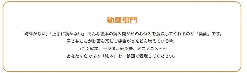 最終選考作品が読み聞かせ動画として公開され、 最終選考作品の応募者からは 「自分の作品が動画になって感動した」 という声が多数寄せられました。 |