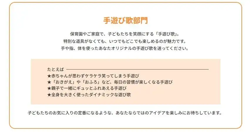 | 手遊び歌部門:保育・教育・音楽など、身体表現に関わる人へ | |||