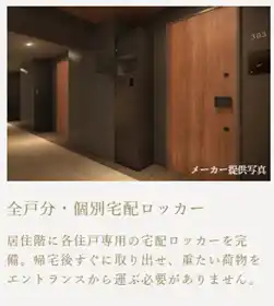 本物件は、高いセキュリティ性とプライバシー性を確保する「内廊下」設計を採用しています。プランは、3LDK ・70平方メートル 超を中心とした全15タイプです。高さ約2,400mmのハイサッシを採用しているため、室内からの視界を広げ、寛ぎのひとときに清爽なゆとりを描きます。また、LDKの内蔵梁により室内に梁型が出にくいすっきりとした居住空間としています。居住階には各住戸専用の宅配ロッカーを完備。邸宅としての美意識を宿した空間設計にしています。 |