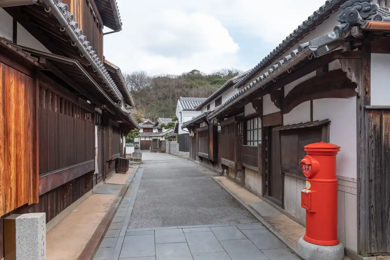 国の重要伝統的建造物群保存地区に選定された笠島地区では、ガイドとともに、歴史ある町並みと笠島 |