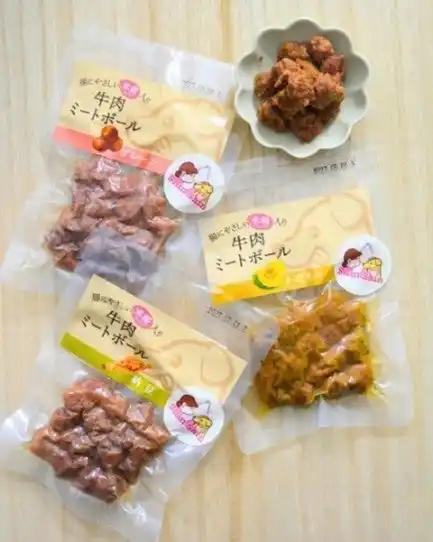 名称: 牛肉ミートボール(プレーン・納豆・かぼちゃの3種類) 鶏肉ミートボール(さつまいも・トマト・ブロッコリーの3種類) 鹿肉ミートボール(プレーンの1種類) |