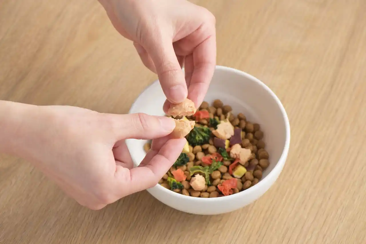 ペットオーナー様への独自アンケートをもとに開発した第一弾の本製品は、「選ぶ楽しさ」「食べてくれる喜び」「素材のおいしさ」の3つを詰め込みました。国産・無添加・米糀入りで素材本来のうまみを引き出し、2025年春の販売開始以降、食いつきの良さが好評です。ペットイベントでは緊張で食べない犬も多い中、本製品はその場で口にする例が多く、オーナー様を驚かせる場面も。年齢や手術などにより食欲が落ちた際のトッピングとしても愛用されています。 |