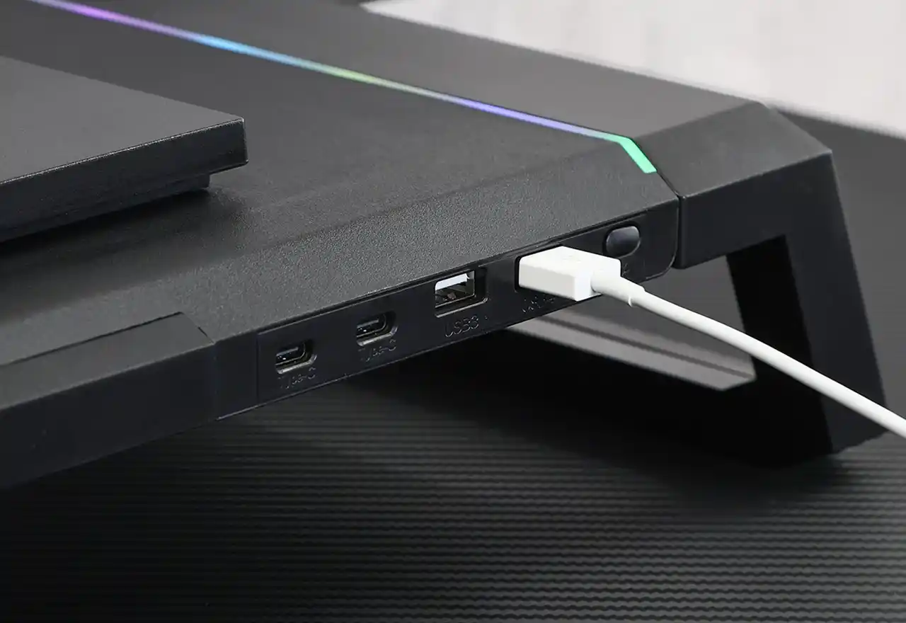 USB Type-A×2、Type-C×2を搭載。コントローラーやヘッドなど、多様なデバイスをスムーズに接続。電源供給用ケーブルは、断線しにくく耐久性の高いナイロン素材のUSB Type-AtoA1.5mケーブルが付属しています。 |