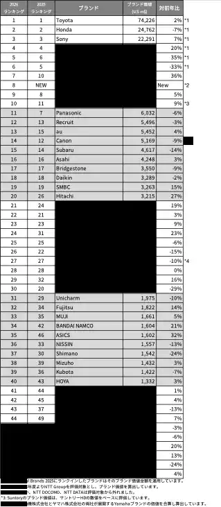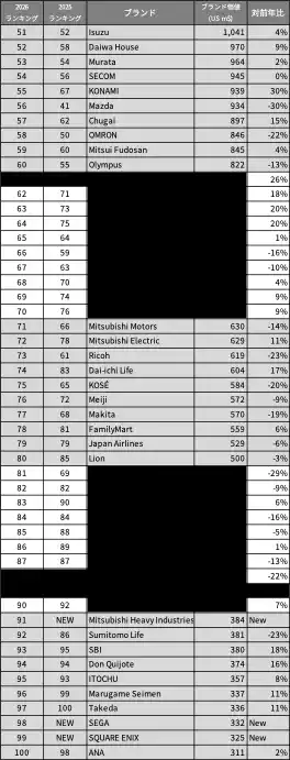 NTT、Mitsubishi Heavy Industries、SEGA、SQUARE ENIXの4ブランドが初ランクイン |