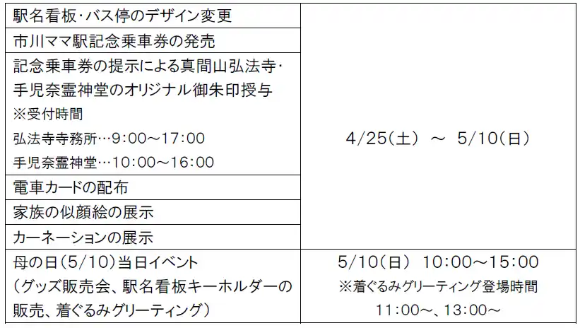 京成電鉄(本社:千葉県市川市、社長:天野 貴夫)と京成バス千葉ウエスト株式会社(本社:千葉県浦安市、社長:藤本 剛弘)では、2026年4月25日(土)から5月10日(日)までの間、市川真間駅の駅名看板とバス停の表記を「市川ママ駅」に変更いたします。 |