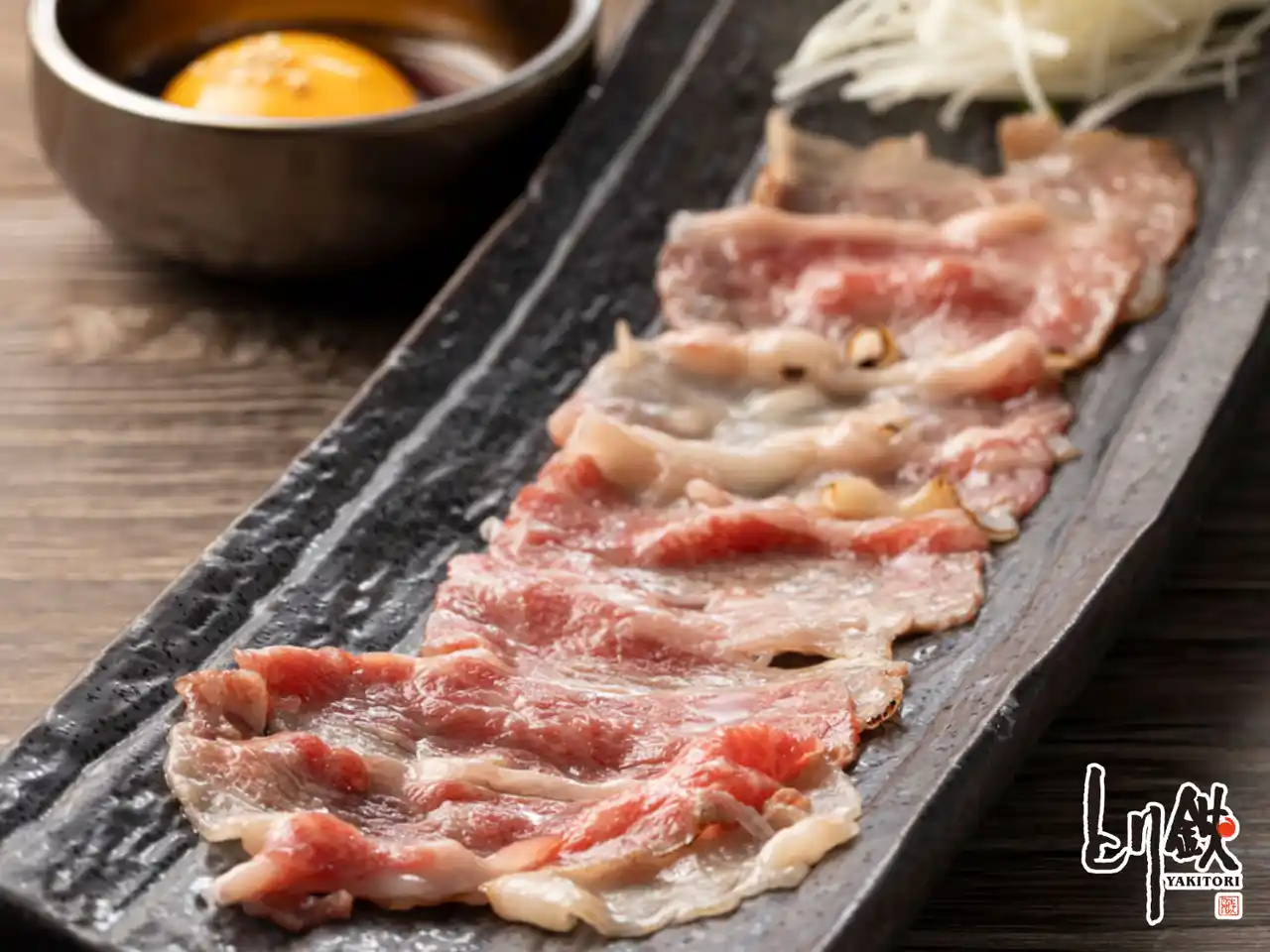 ●和牛かぶりの炙り刺し ~卵黄と白髪ねきで~ |