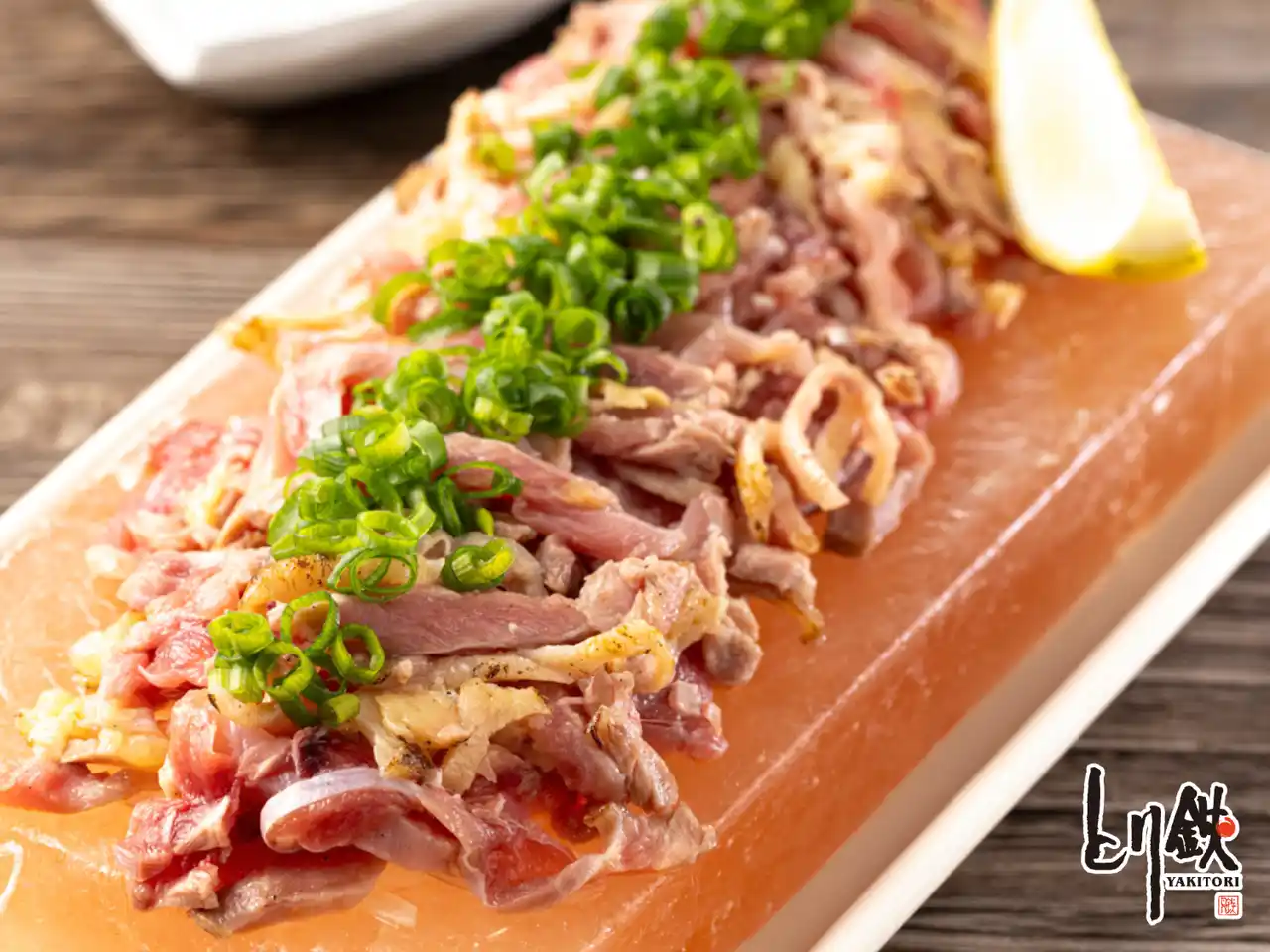 ●親鶏もも肉の炙り刺し 岩塩盛り |
