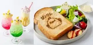 カフェでは、ぴよりんの見た目と味わいを、様々な形で表現したデザート、ドリンク、フードメニューを幅広くご用意しています。 |