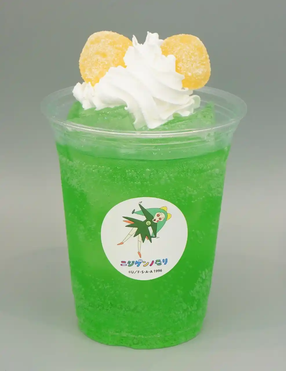 | 「トッペマメロンソーダ」は、メロンソーダにたっぷりのホイップクリームとレモン味のグミでトッペマを表現。たくさん体を動かした後にシュワっと甘いドリンクで体力を回復しよう!コラボフード1品購入につき、ノベルティとしてスゲーナスゴイデストランプ風カード(しんのすけ・トッペマ柄)をプレゼントいたします。 | |||||||||