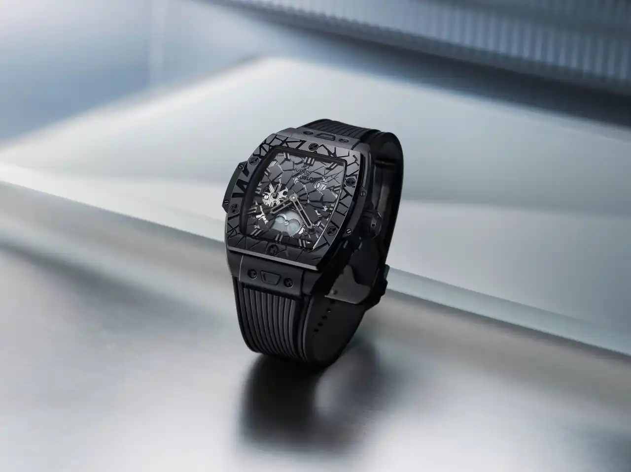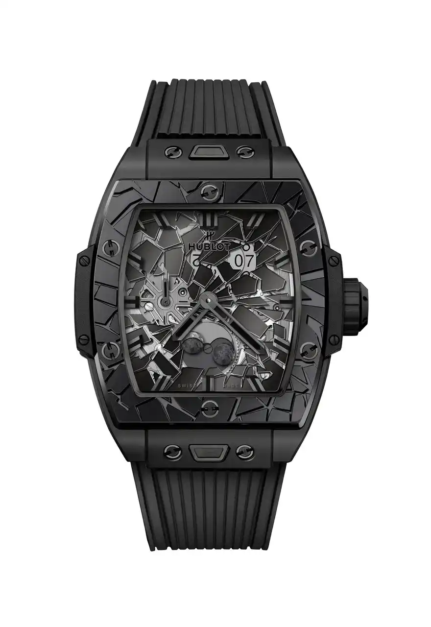 今年、ウブロの象徴的な「オールブラック」コンセプトが20周年を迎えます。これは、時計はコントラストによって視認できるという革命的なアイデアであり、黒が至高の存在となり、控えめなデザインが大胆な主張へと変わる世界です。ポリッシュ仕上げとマイクロブラスト加工を施したブラックセラミックで表現された「スピリット オブ ビッグ・バン インパクト」は、ウブロの「見えない可視性」を巧みに演出し、ポリッシュ仕上げ&マイクロブラスト加工によって質感を引き立てています。 |