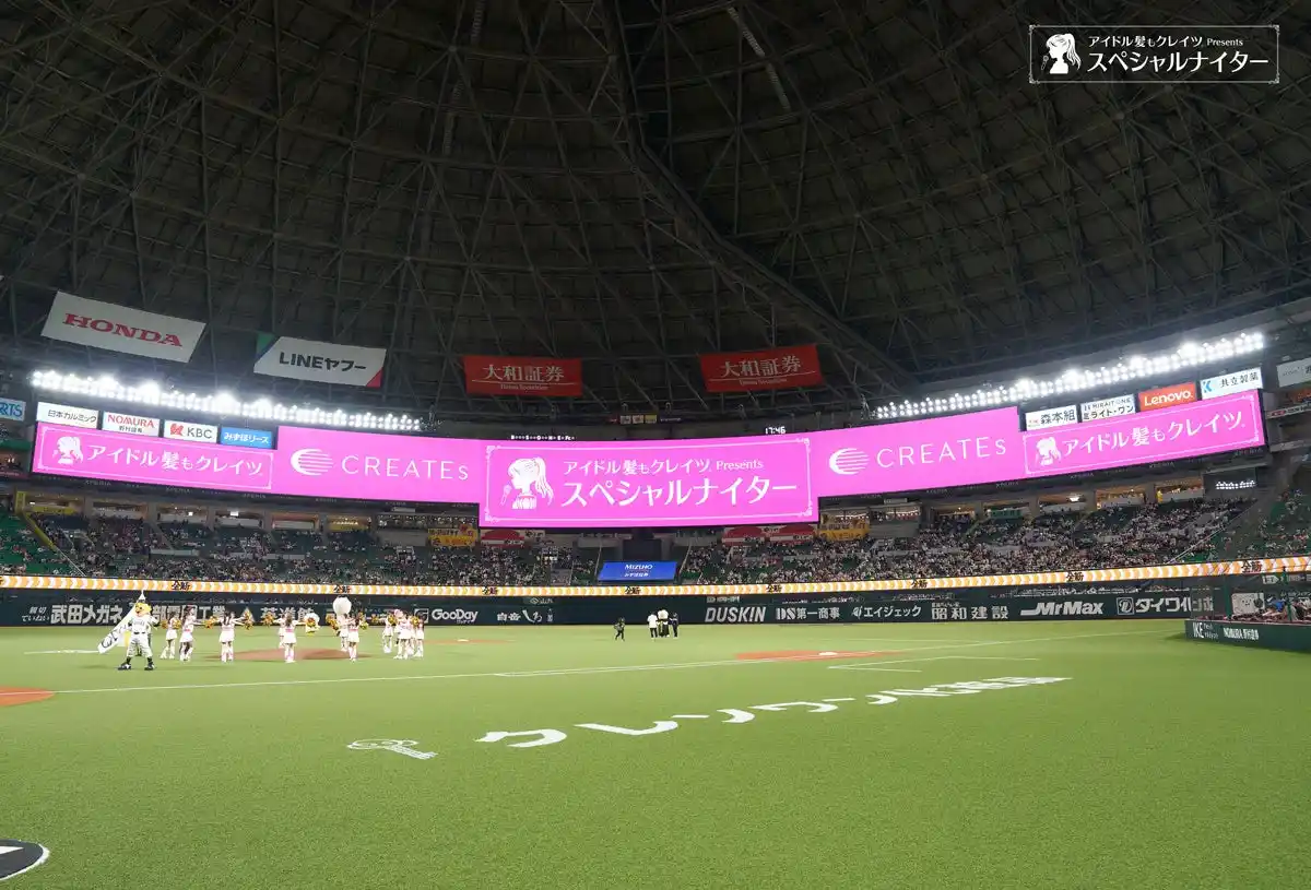 | ヘアケア家電メーカー、株式会社クレイツ(本社:福岡県福岡市、代表取締役社長:貝塚弘幸)は、2026年4月14日(火)みずほPayPayドーム福岡にて、冠協賛試合「アイドル髪もクレイツ presents スペシャルナイター2026」を開催しました。 | |||||||||