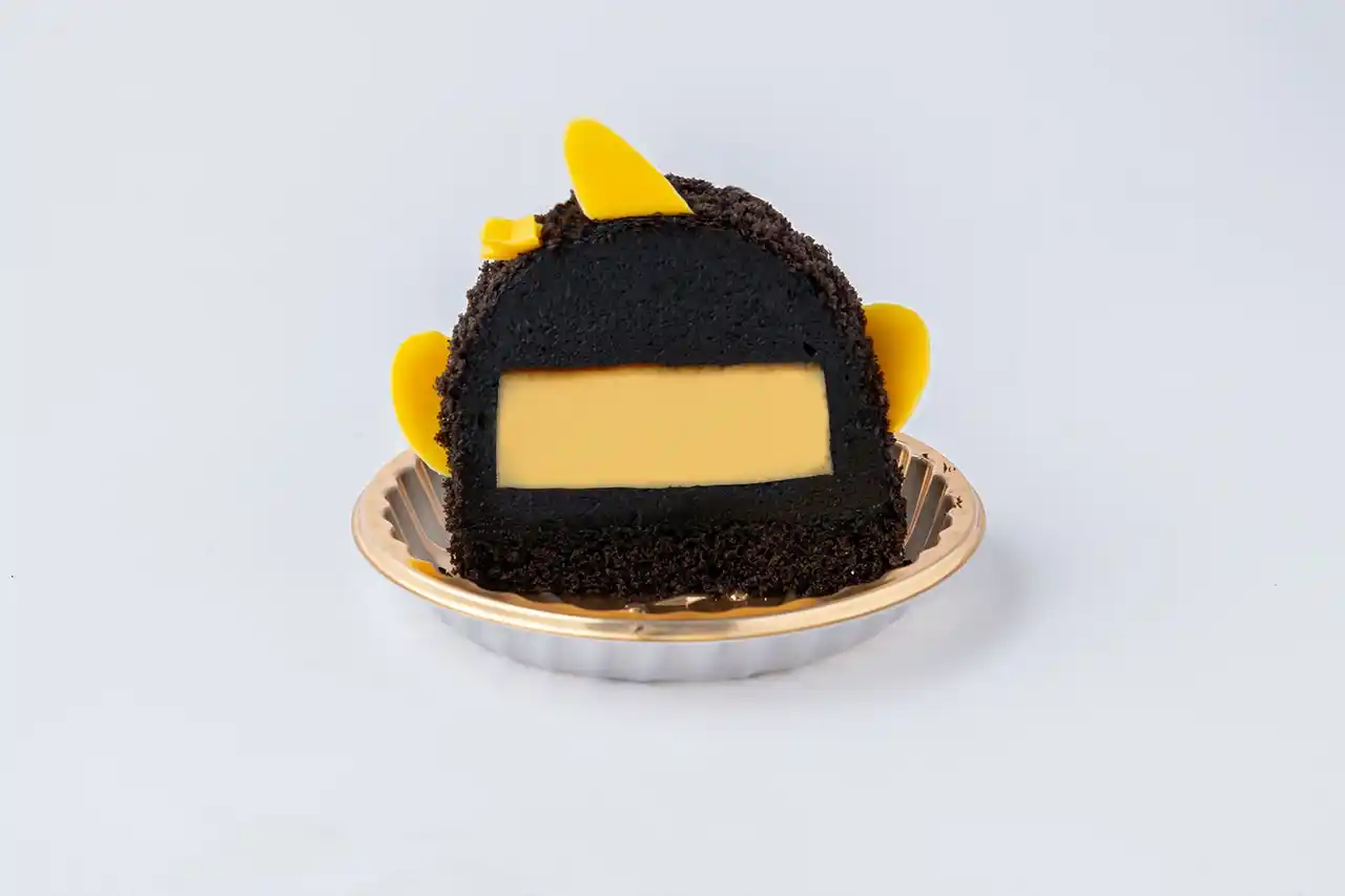 もうひとつの限定ぴよりんが、17時以降にのみ提供される「星空ぴよりん」です。 名古屋コーチンの卵を使った濃厚なプリンを、ココアとチョコレートのババロアで包み、夜空をイメージした、竹炭入りの真っ黒なクラムで包みました。頭に星型のチョコレートをあしらった、愛らしいビジュアルが特徴です。 |