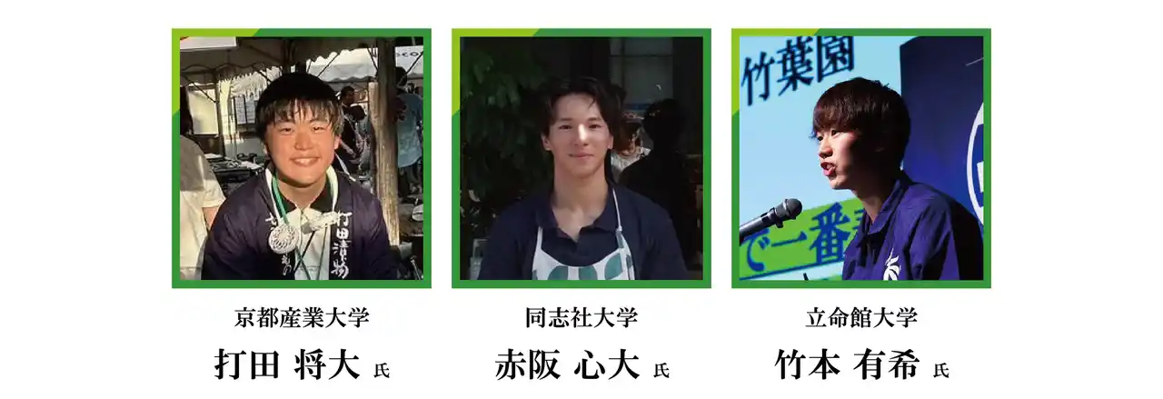 「世界文化歴史都市」「学生のまち」という京都の特徴を活かし、共創パートナーとして、京都産業大学イノベーションセンター・同アントレプレナーシップ学環、同志社大学商学部関智宏ゼミ、立命館大学経営学部久保田典男ゼミと連携・協力します。大学を超えた対話と交流を通じて、家業と自分に向き合い、自身の可能性を広げ、起業家精神と地域愛を持った学生の挑戦を地域ぐるみで後押ししていきます。 |