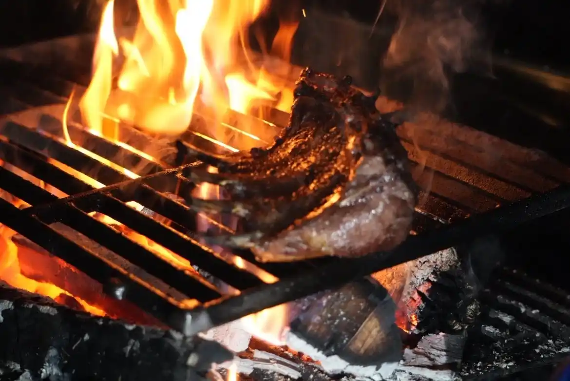 店内には薪火のファイヤーピットを設置。炎のぬくもりを感じながら、料理をお楽しみいただけます。 |