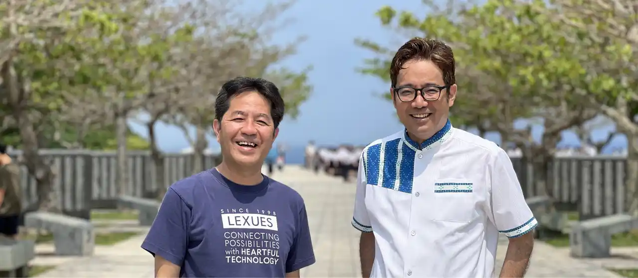今回の新体制では、信頼する山城に経営の舵取りを託し、私は会長として「レキサス」と「うむさんラボ」の連携・共創をこれまで以上に力強く進めていきます。それぞれの強みを持ち寄り、響き合わせることで、理想とするあたたかい社会への歩みをより確かなものにしていきたい。そして、みんなで「世界に誇れる沖縄」を創造することに、これからも邁進してまいります。 |