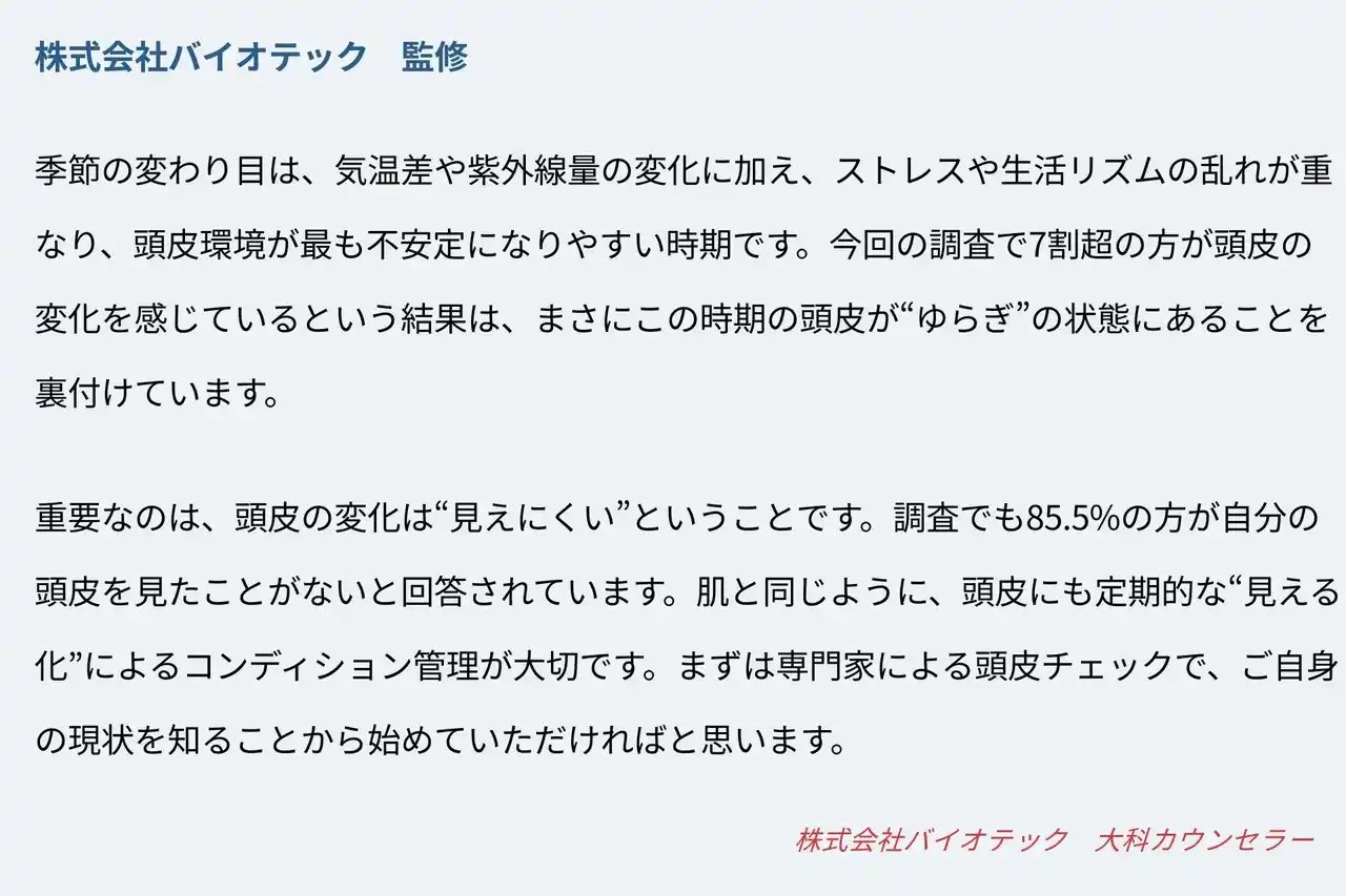 7割超が「季節の変わり目に頭皮の変化を実感」 |