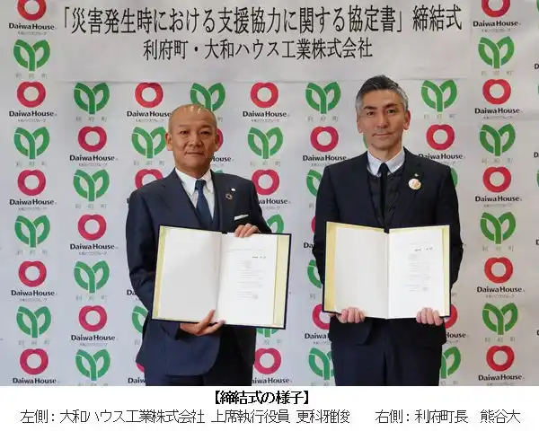 宮城県宮城郡利府町(町長:熊谷大(ゆたか)、以下「利府町」)と大和ハウス工業株式会社(本社:大阪市、社長:大友浩嗣、以下「大和ハウス工業」)は、本日(2026年4月15日)、「災害発生時における支援協力に関する協定書」を締結しました。 |