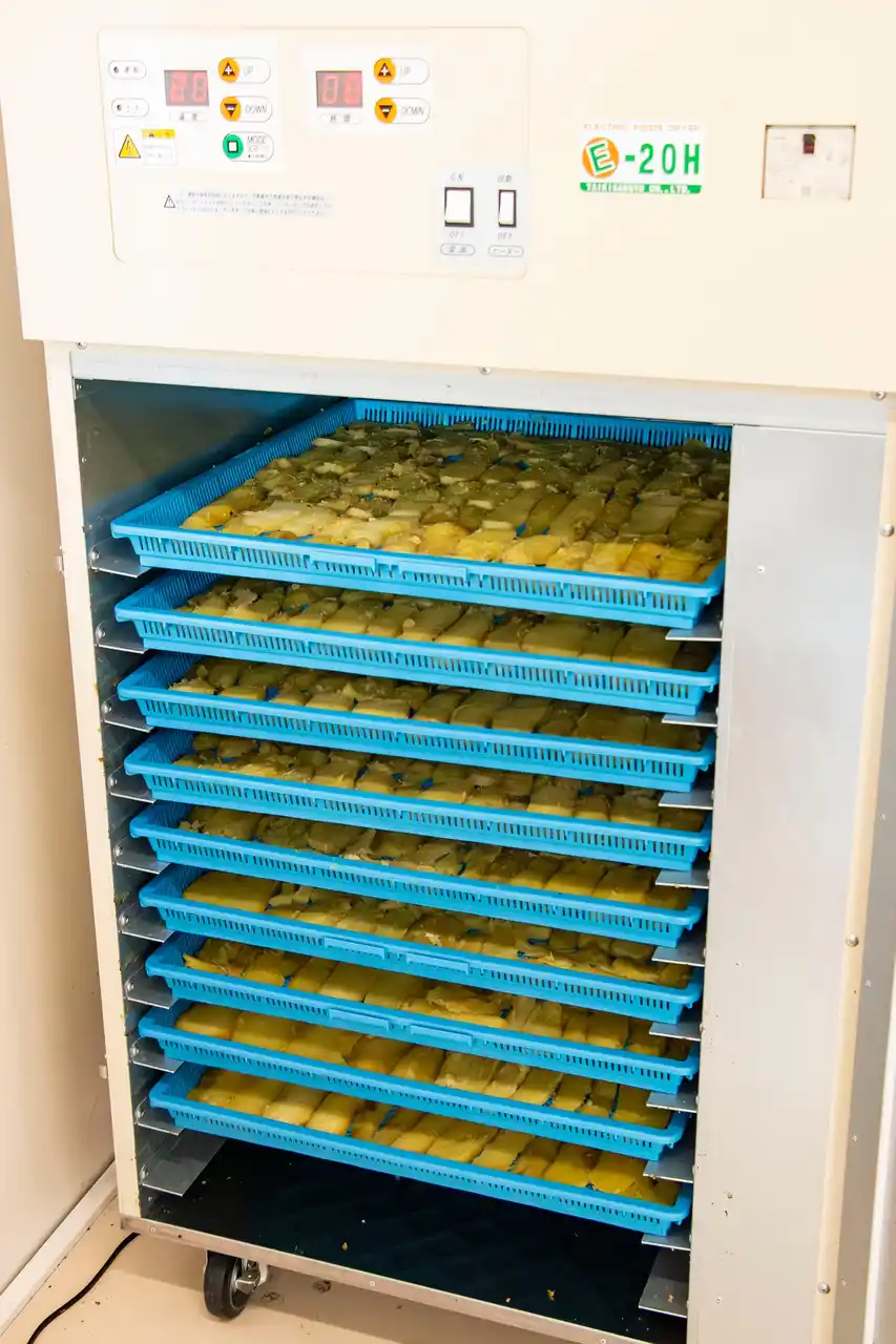 並べ終わったさつまいもは乾燥機へ |