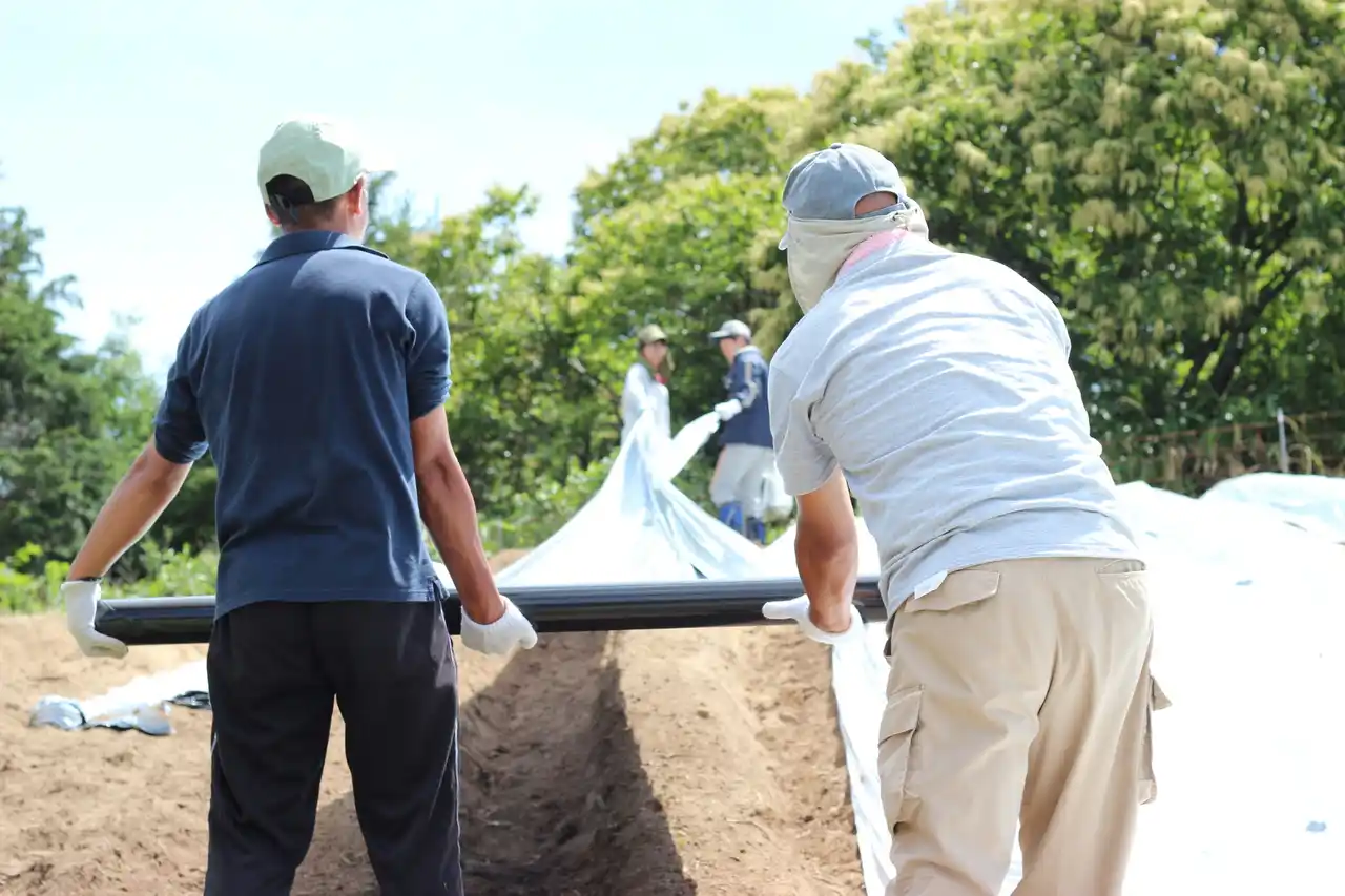 栽培前の準備の様子。青葉仁会が地域から耕作放棄地を譲り受け、障害のある方々の手で開墾を行い、命芽吹く土壌へと蘇らせている |