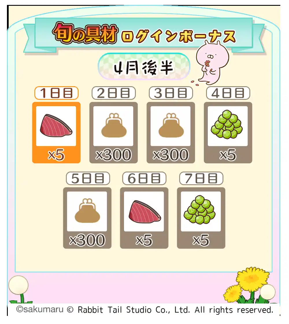 【旬の具材ログインボーナス(4月後半)】 |
