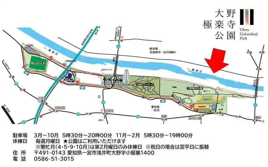 大野極楽寺公園は愛知県一宮市にある一宮市の公園で、138タワーパークに隣接しています。 |
