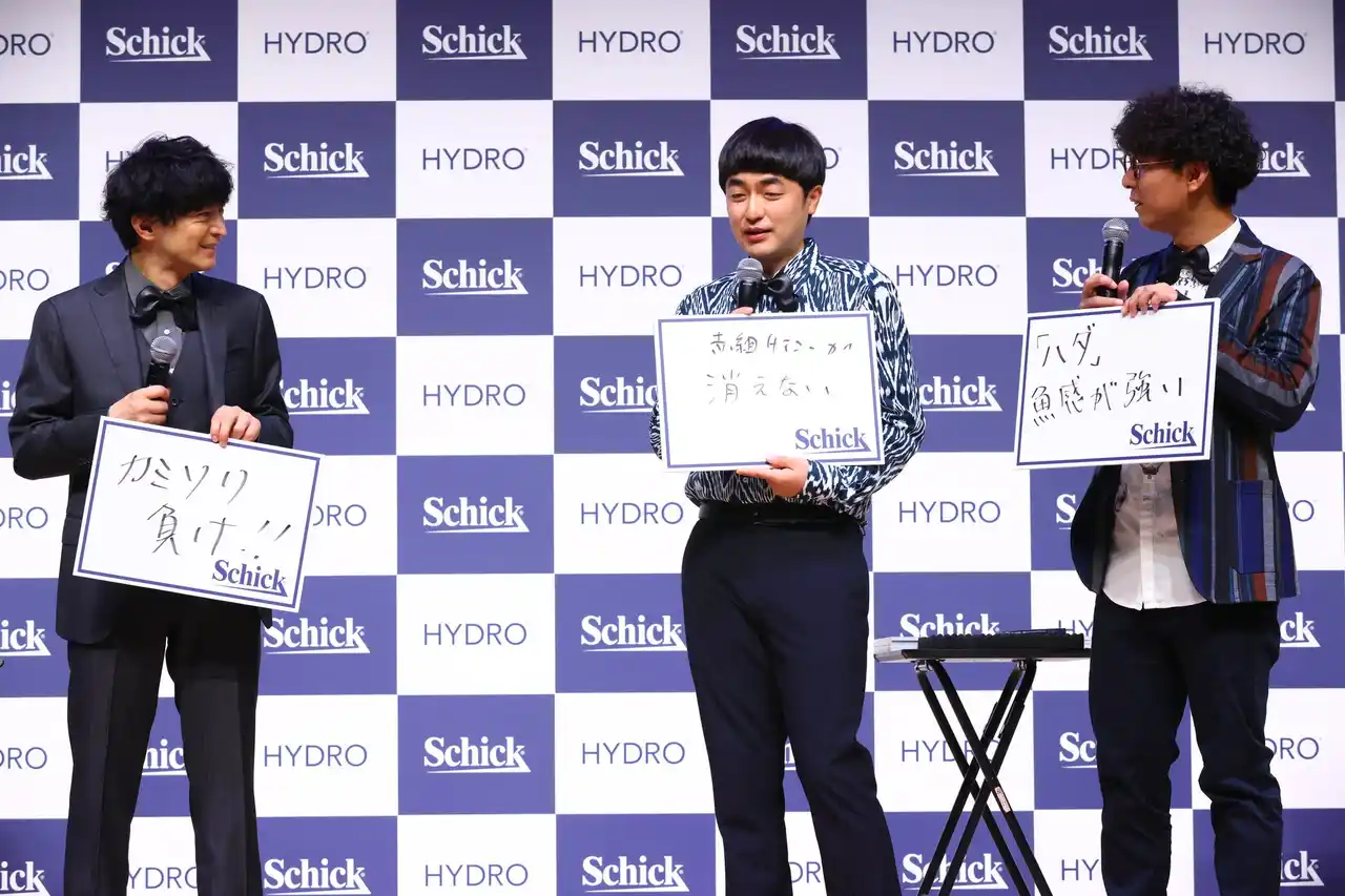 日本カミソリ市場No.1*1のシック・ジャパン株式会社は、2026年4月15日(水)に「Schick HYDRO リニューアル・肌ケア啓発PRイベント」を開催しました。イベント当日は、シック・ジャパン株式会社 代表取締役社長兼北アジア地域社長の後藤秀夫による主催者挨拶のほか、ヘア&メイクアップアーティストのKUBOKIさんによる正しいシェービング・肌ケア解説トークを実施。新TVCM・WebCMに出演した津田健次郎さんに加え、芸人のたくろうが登壇し、シェービングにまつわる肌ケアクイズで楽しく分かりやすくシェービング剤の重要性を学びました。 |
