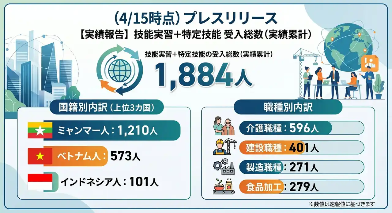 ※ 2026年4月9日現在。技能実習・特定技能の合算値。 |