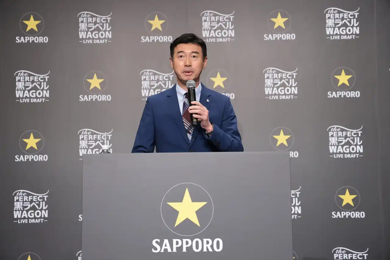 サッポロビール(株)マーケティング本部 ビール&RTD事業部 部長 下和田勇より、「THE PERFECT 黒ラベル WAGON ‐LIVE DRAFT‐」開催概要について発表。 |