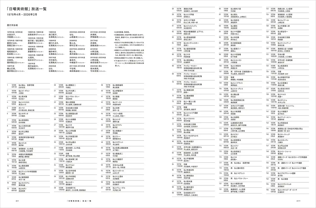 巻末には日曜美術館50年の記念図録ならではの「歴代司会者アンケート」と、 |