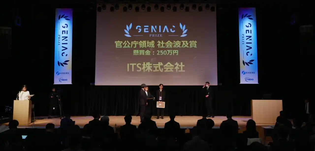 ITS株式会社(本社:東京都港区、代表者:伊藤拓也)は、経済産業省および国立研究開発法人新エネルギー・産業技術総合開発機構(NEDO)が主催するNEDO懸賞金活用型プログラム「GENIAC-PRIZE」において、官公庁領域の審査総合点で最高得点600点を獲得し、特別賞「社会波及賞」を受賞しました。 |