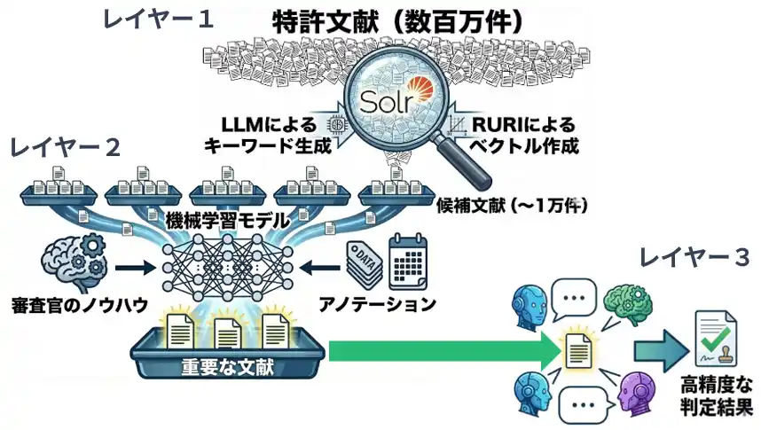 ハイブリッド検索、審査官知見を反映したリランキング、複数LLMの協調を組み合わせた高精度な検索システムを実現し、これが総合点で最高得点につながったと考えています。 |