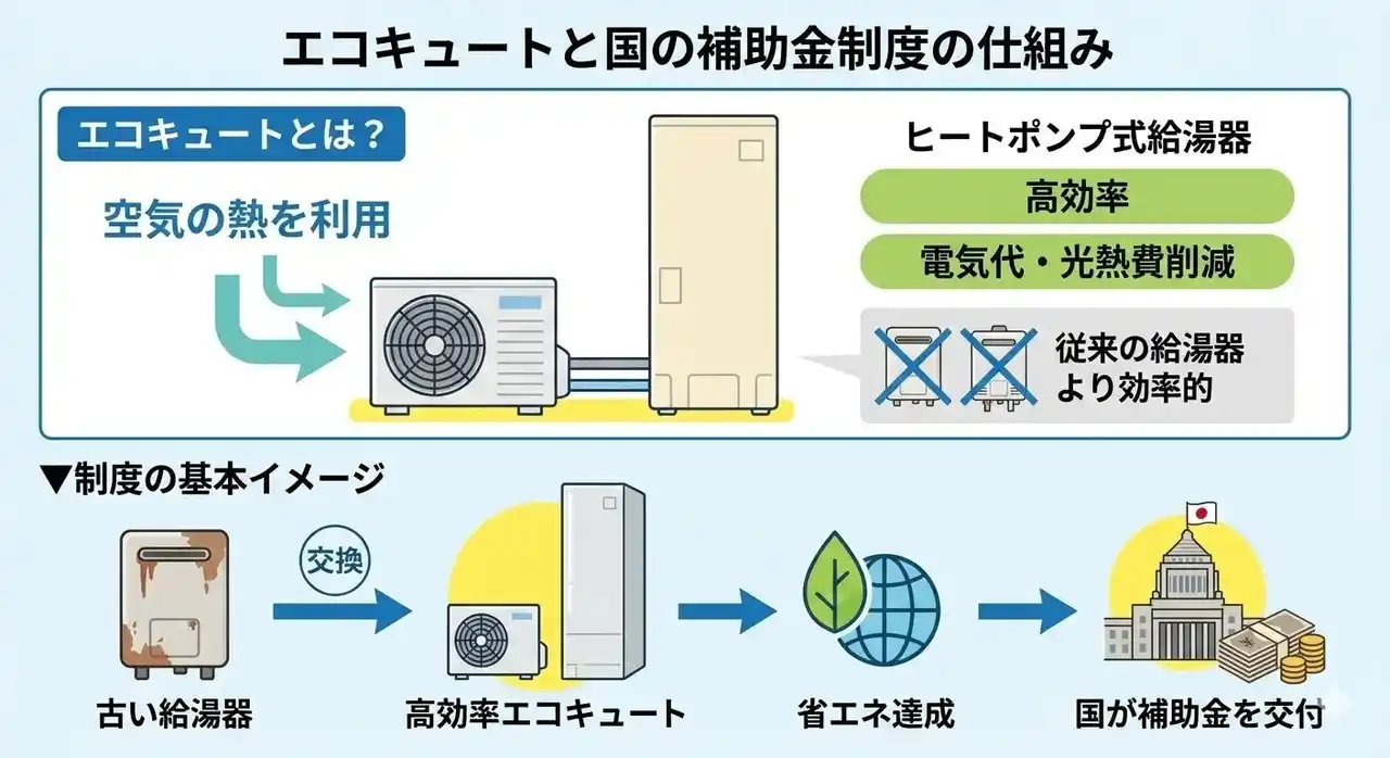 給湯省エネ2026事業を活用することで、実質負担額を大幅に抑えてエコキュートに交換できます。 |