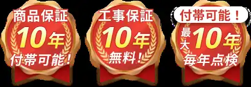 補助金受取 アフターサポート補助金受取後も、最大10年間の定期点検サービス(有料)で長期にわたって安心をお届けが可能です。 |
