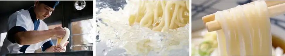 「ここのうどんは、生きている。」をブランドメッセージに掲げ、日々、食の感動体験を探求し手づくりの「おいしいうどん」をお客さまに提供しています。私たちは一軒一軒が製麺所であり、徹底的に鮮度にこだわり、国内800を超えるすべての店で、手間を惜しまず粉からうどんを日々つくり続けています。 |