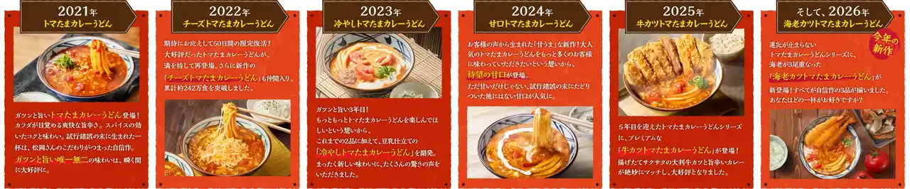 ≪累計販売数1,200万食※突破!進化し続ける「トマたまカレーうどんシリーズ」6年間の歩み≫ |