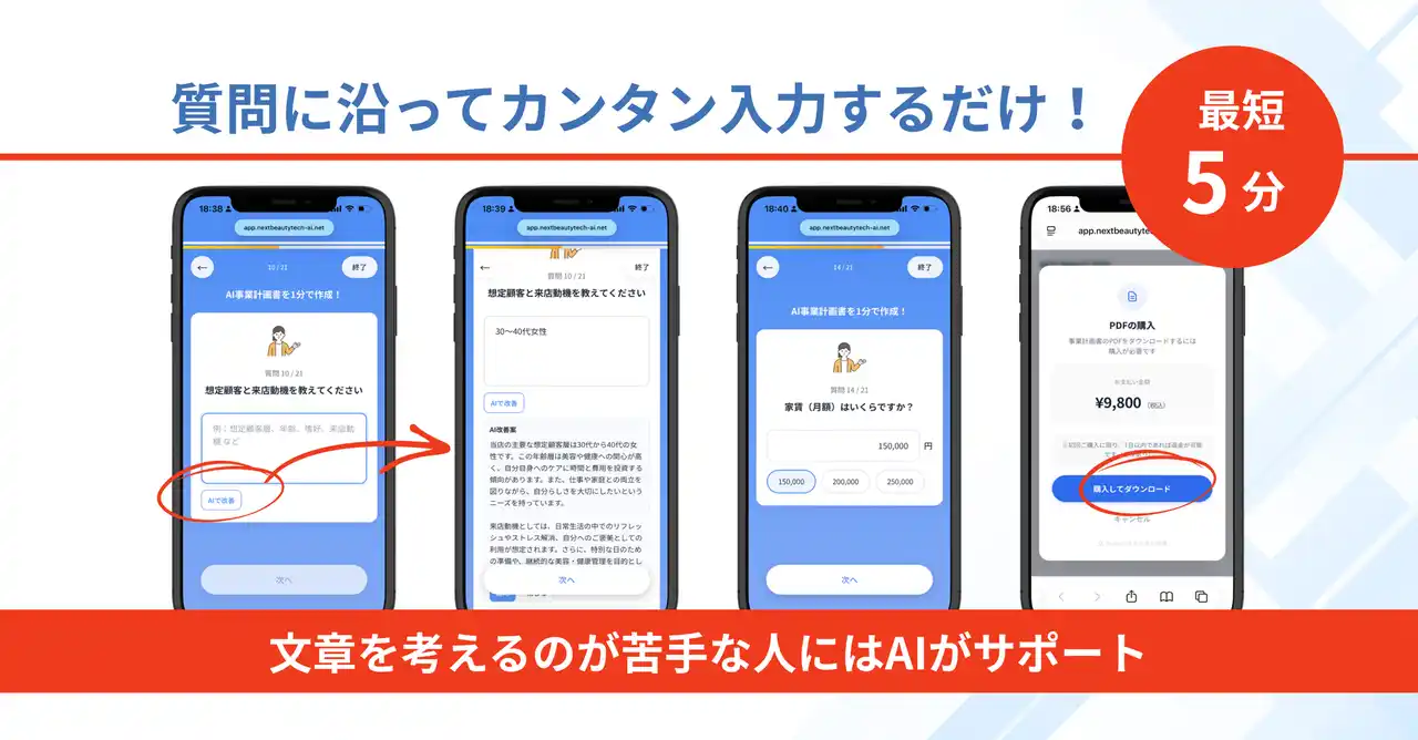 美容室開業支援事業を行うNEXT BEAUTY TECH(東京都渋谷区)は、美容師・理容師向けに、開業準備時に必要な事業計画書をAIと独自の計算ロジックを活用して自動作成できるサービスを開始しました。 |