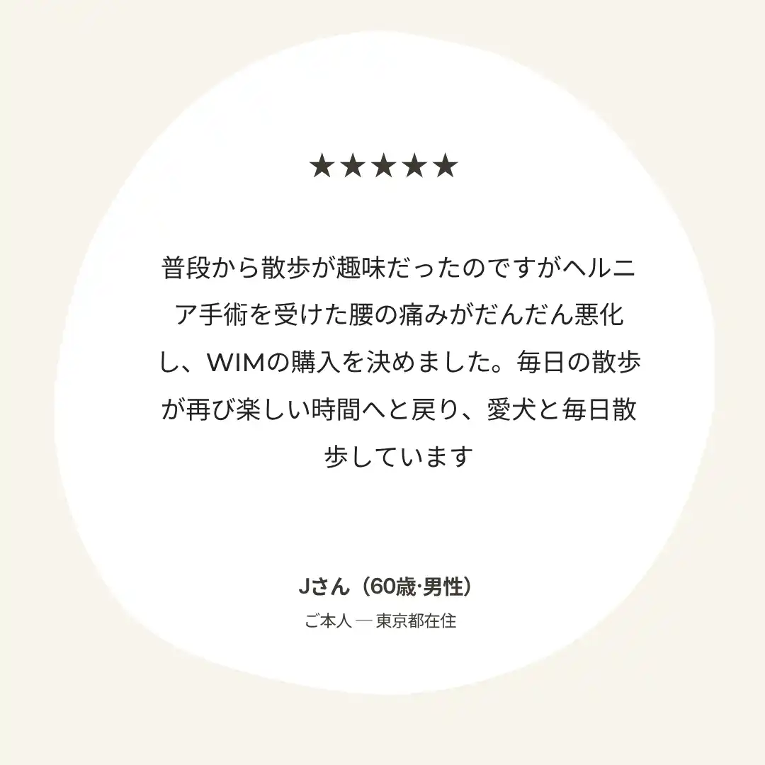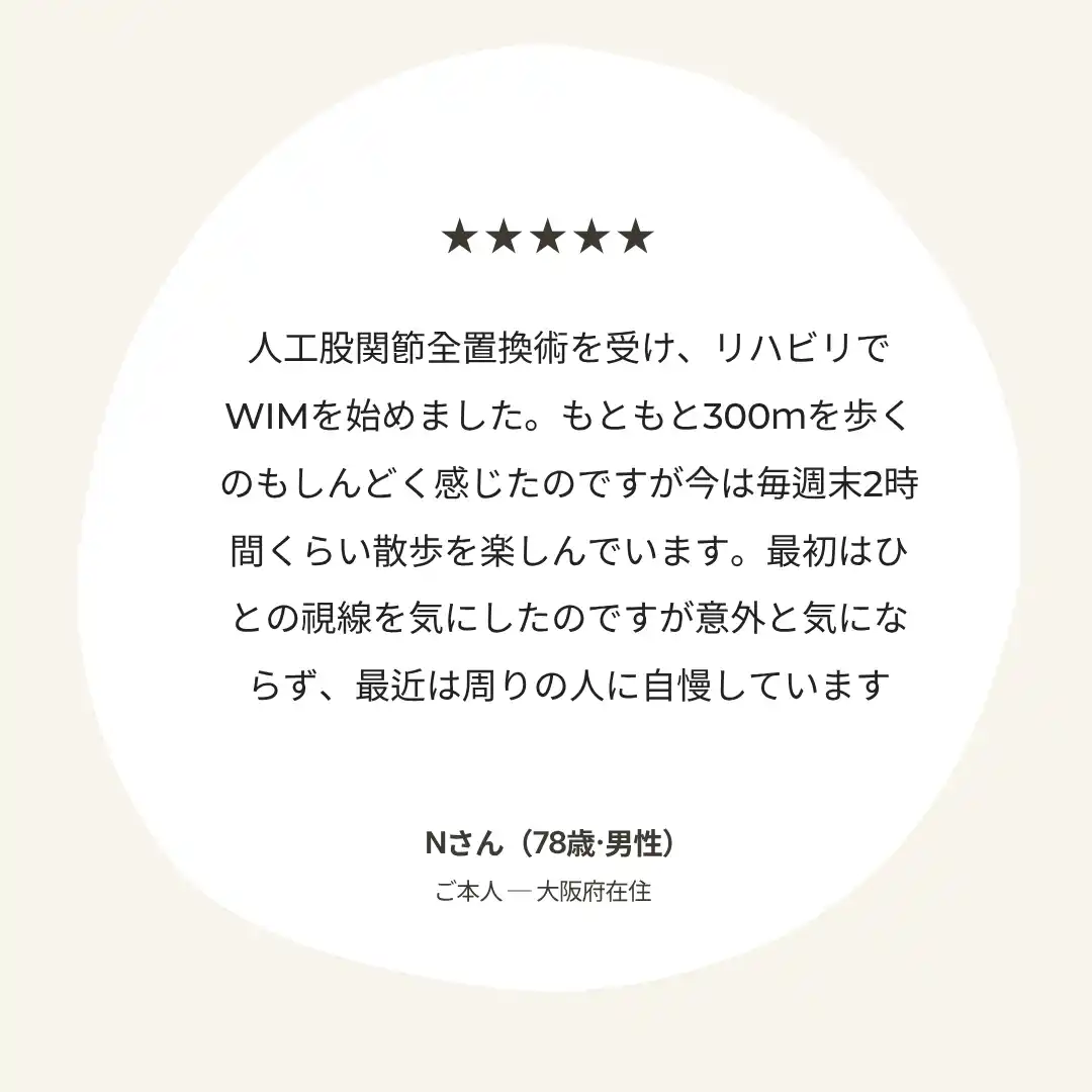 WIM Sが目指すのは、単なるデバイスの販売ではなく、あなたの「歩く喜び」を取り戻すことです。 |