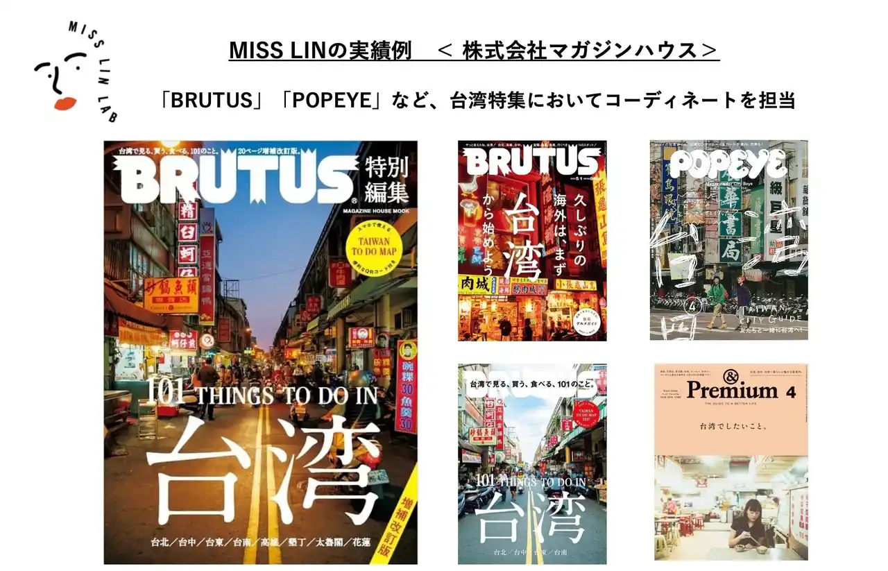 | BRUTUSやPOPEYEなど、台湾特集においてコーディネートを担当。 | |||||