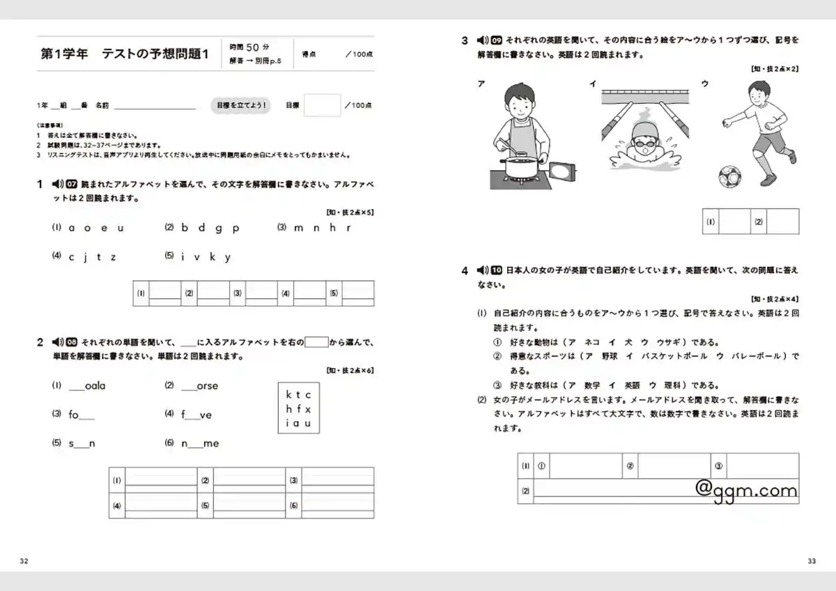▲「中1英語」より。「テストの予想問題」(※紙面はイメージです) |