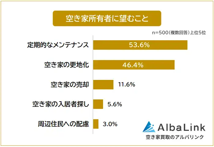 空き家所有者に望むことは「定期的なメンテナンス」 |