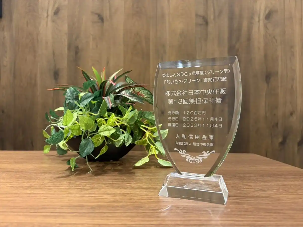 株式会社日本中央住販はこのたび、2025年11月4日付で、大和信用金庫を引受先とするやましんSDGs私募債(グリーン型)「ちいきのグリーン」を発行いたしました。 |