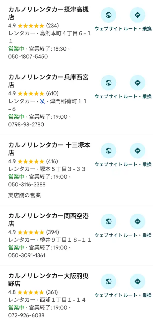 カルノリレンタカーは格安レンタカーですが『安かろう悪かろう』は徹底排除しています。格安な分、新車をレンタカーとして提供することは難しいですが、それ以外の『接客サービス』には日本一力を入れて取り組んでいます。その結果、Googleの口コミにおいて、お客さまから高評価な口コミをいただいています。 |