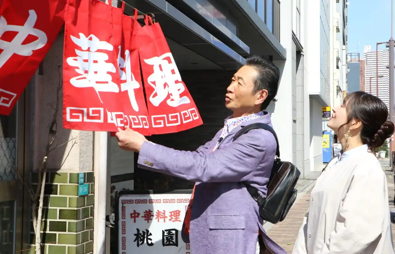 お腹が空いてきたふたりは【中華料理 桃園(とうえん)】へ。創業54年、昭和の雰囲気漂う町中華で、お昼時には会社員の方から大人気です。 |