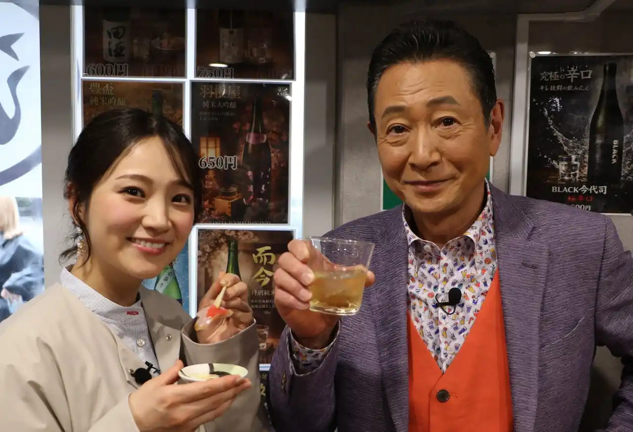 辛口好きの三田村、店主おすすめの『ブラック 今代司(いまよつかさ)』をいただきます。キレが良くて「文句の付けようがない」と大満足の様子。さらに、看板メニューの『造り盛り合わせ』も絶品!価格を聞いた三田村は、京橋の「価格崩壊」にびっくり!「想像を100倍ぐらい超えています」。 |