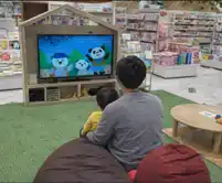 未来屋書店では、地域の子どもたちが本を通じて世界をひろげ、豊かな心を育むお手伝いをするための児童書コーナー「みらいやの森※6」を順次導入しています。親子でくつろげるスペースでは、読書や読み聞かせの動画を楽しむことができます。 |