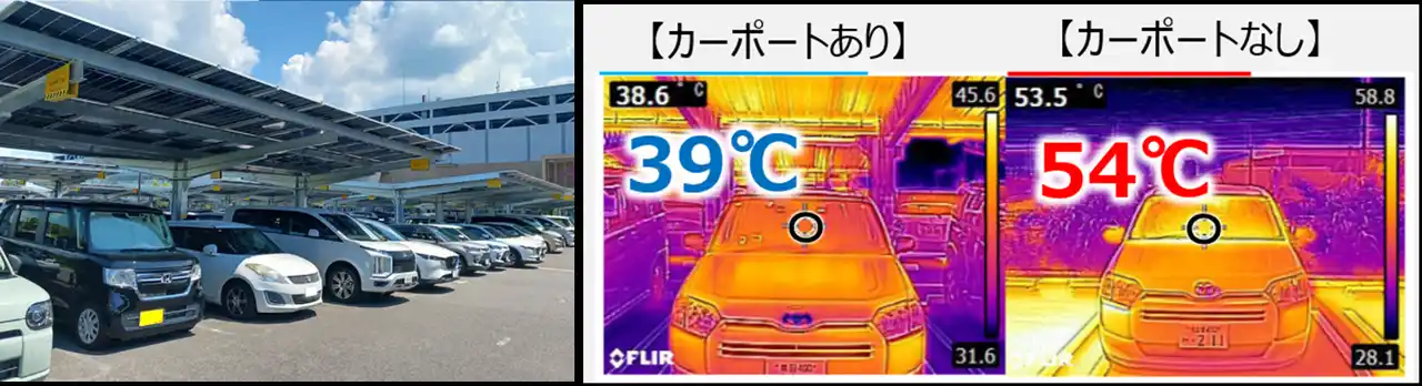 ■日陰ができて発電もするソーラーカーポートを平面駐車場に設置 |