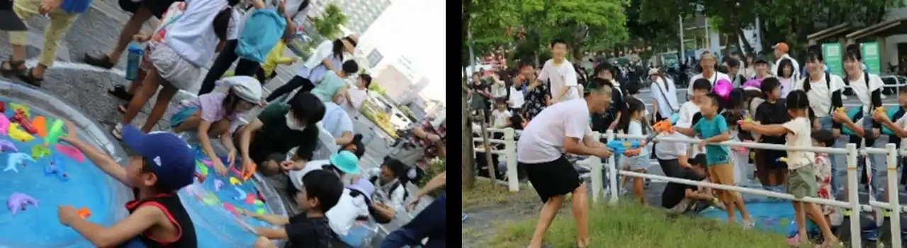 全国の各ショッピングセンター(以下、SC)では、ご家族で夏の思い出作りができる「こども縁日」を館内で計画しているほか、イオンタウン千種では名古屋工業大学等と連携した地域一体型イベント「ツルマイ・チクサ ミズマツリ」を実施し、都市部での涼しい回遊空間を創出しています。 |